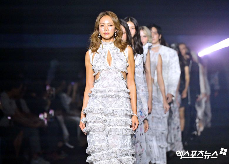 이날 서울패션위크에 참석한 야노시호가 런웨이를 걷고 있다.