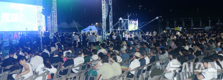 [무주=뉴시스] 김얼 기자 = 제29회 무주반딧불축제 개막식이 열린 6일 전북 무주군 등나무운동장을 찾은 시민들로 장내가 북적이고 있다. 2025.09.06. pmkeul@newsis.com |
