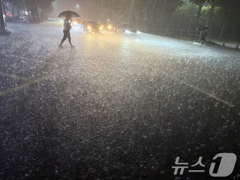 집중호우로 차량들이 서행하고 있다. /뉴스1 |