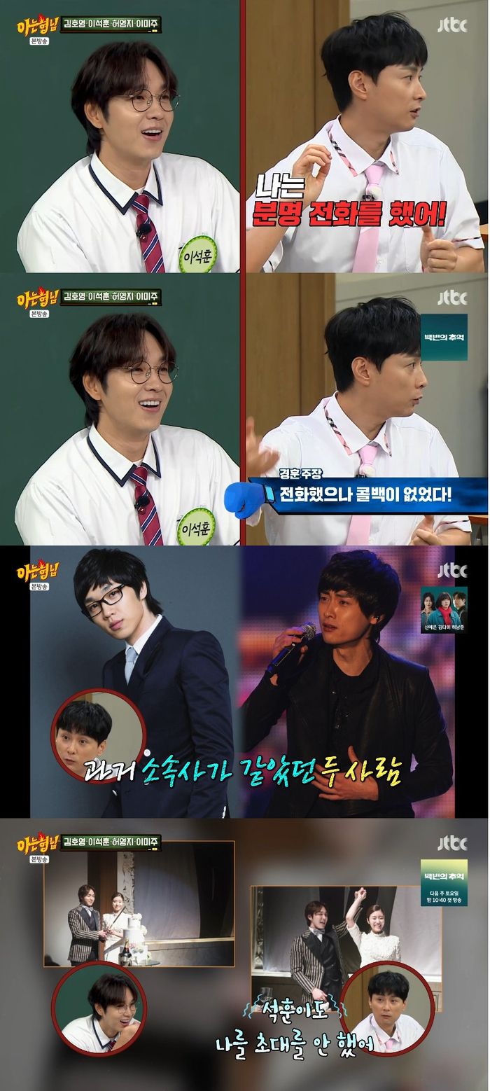 이에 민경훈은 “석훈이가 오해하고 있는 게 난 분명히 전화했어. 그런데 콜백이 안 왔어. 석훈이랑 친해진 것도 같은 소속사였거든. 그래서 전 소속사 분들은 다 왔었어. 내 번호도 그대로야”라고 맞받아쳤다.