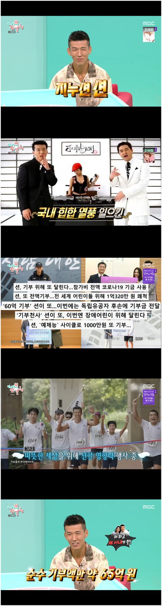 6일 방영된 MBC 예능 ‘전지적 참견 시점’(이하 ‘전참시’)에서는 꾸준히 기부와 선행을 보이는 션이 등장했다. 전현무는 “누적 기부액만 65억 원이다. 요즘 젊은 친구들은 이 분이 잘 뛰는 사회복지사인 줄 안다. 그런데 블랙핑크, 빅뱅 이전에 있던 힙합 전사다”라며 유쾌하게 소개했다.