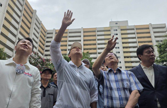 [서울=뉴스핌] 양윤모 기자 = 오세훈 서울시장이 4일 오전 도봉구 도봉동 삼환도봉아파트 재건축사업 현장을 방문해 현장점검을 하고있다.  이번 사업은 서울시에서 준공업지역 용적률 완화를 처음 적용한 사례가 됐으며,용적률 343.49%가 적용돼 신탁방식으로 최고 42층 993세대가 들어선다. 2025.09.04  yym58@newspim.com