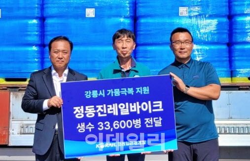 [이데일리 이선우 기자] 코레일관광개발 정동진레일바이크가 강릉시에 생수 3만 3600병을 전달했다. 여름철 장기 가뭄으로 발생한 생활용수 부족으로 어려움을 겪는 지역민을 위한 사회공헌 활동의 일환이다. 강릉시는 코레일관광개발이 기부한 생수를 지역 내 취약계층을 대상으로 우선 배부할 예정으로 알려졌다.
