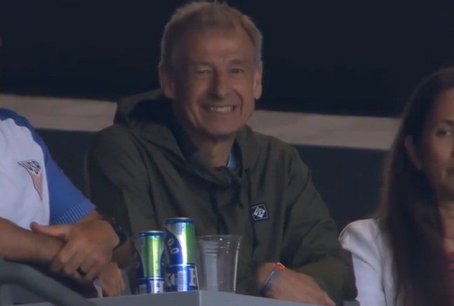한국은 7일(한국시간) 미국 뉴저지주 해리슨에 위치한 스포츠일러스트레이티드 스타디움에서 미국 대표팀과 9월 원정 첫 번째 경기를 치렀다. 경기를 치르던 중, 중계 화면 속 관중석 한켠에 낯익은 인물이 포착됐다. 지난해 2월 경질된 전 한국 대표팀 사령탑 클린스만이었다.