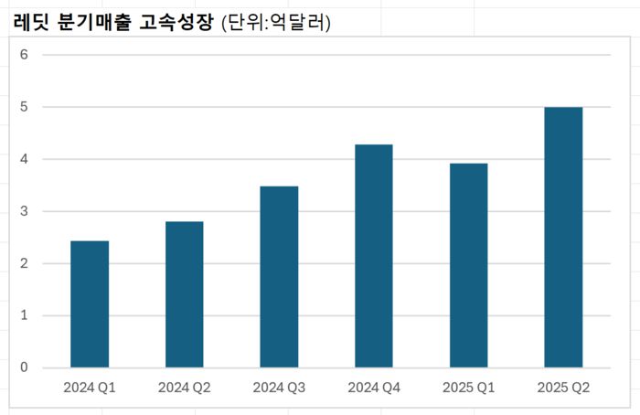 레딧의 지난 2분기 매출은 전년 동기 대비 78% 성장한 5억달러(약 7000억원)다. 순이익도 1년 전 적자(-1000만달러)에서 흑자(8900만달러)로 전환됐다.