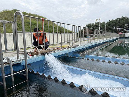 (강릉=연합뉴스) 박영서 기자 = 7일 강원 강릉지역에 최악의 가뭄이 계속되는 가운데 강릉시민 18만명이 사용하는 생활용수를 공급하는 홍제정수장에서 강릉재향소방동우회 회원들이 운반급수를 돕고 있다. 2025.9.7