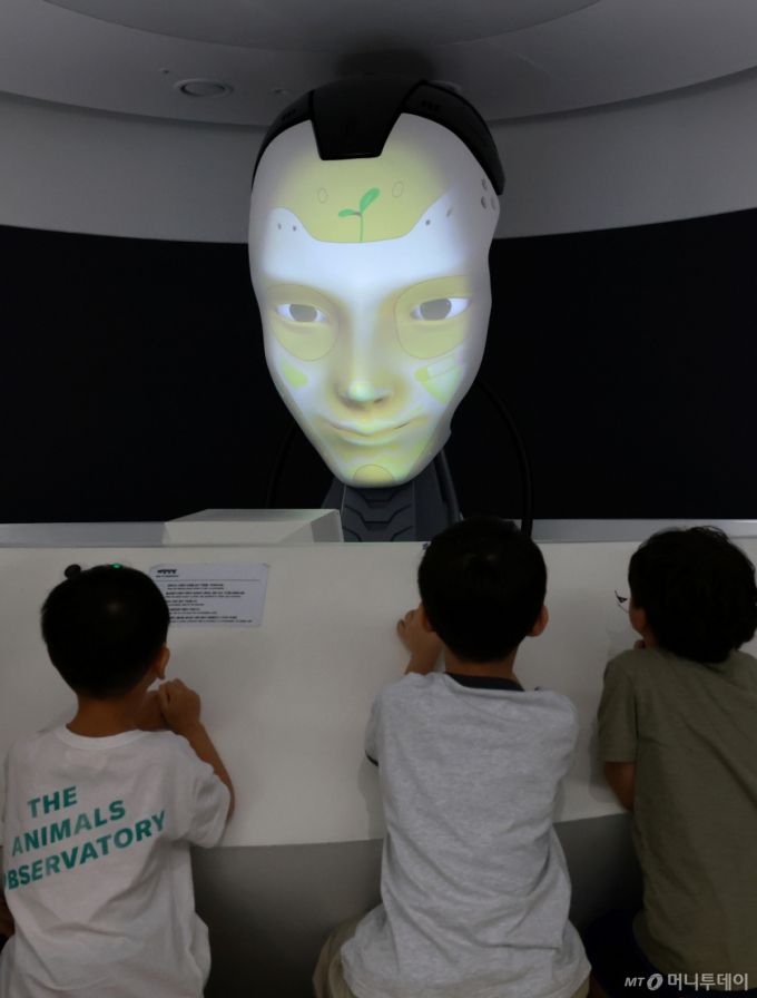 (서울=뉴스1) 권현진 기자 = 이재명 정부가 역대 최대 규모인 728조 원 규모의 내년도 예산안을 편성했다. R&D 예산은 5조7천억 원 늘어난 35조3천억 원, AI 예산은 3배 이상 증가한 10조1천억 원으로 책정됐다. 'ABCDEF' 첨단산업에는 총 10조6천억 원이 투입되며, 정부는 피지컬 AI 선도국가 도약을 목표로 한다. 29일 서울 도봉구 서울로봇인공지능과학관에서 시민들이 메타 휴머노이드 '마스크봇'과 대화하고 있다. 2025.8.29/뉴스1 Copyright (C) 뉴스1. All rights reserved. 무단 전재 및 재배포, AI학습 이용 금지. /사진=(서울=뉴스1) 권현진 기자 |