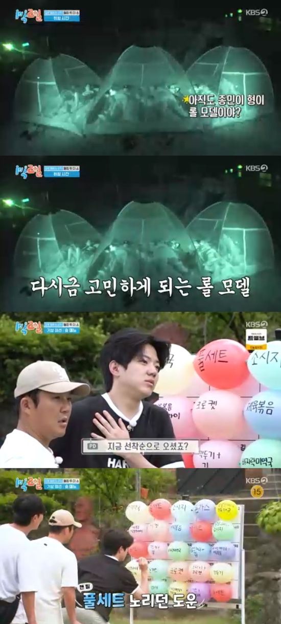 나머지 멤버들도 오른쪽 4인실로 몰리면서 왼쪽 4인실의 김종민과 유선호 2인실의 이준만 실내취침을 하게 됐다.