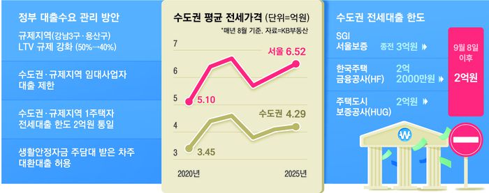 8일부터 서울과 수도권의 1주택자 전세대출 한도가 2억~3억원에서 2억원으로 줄어든다. 또 무주택자의 규제지역(강남3구·용산구) 주택담보대출비율(LTV)은 최대 50%에서 40%로 강화된다. 주택매매·임대사업자에 대한 주택담보대출은 전면 금지된다.