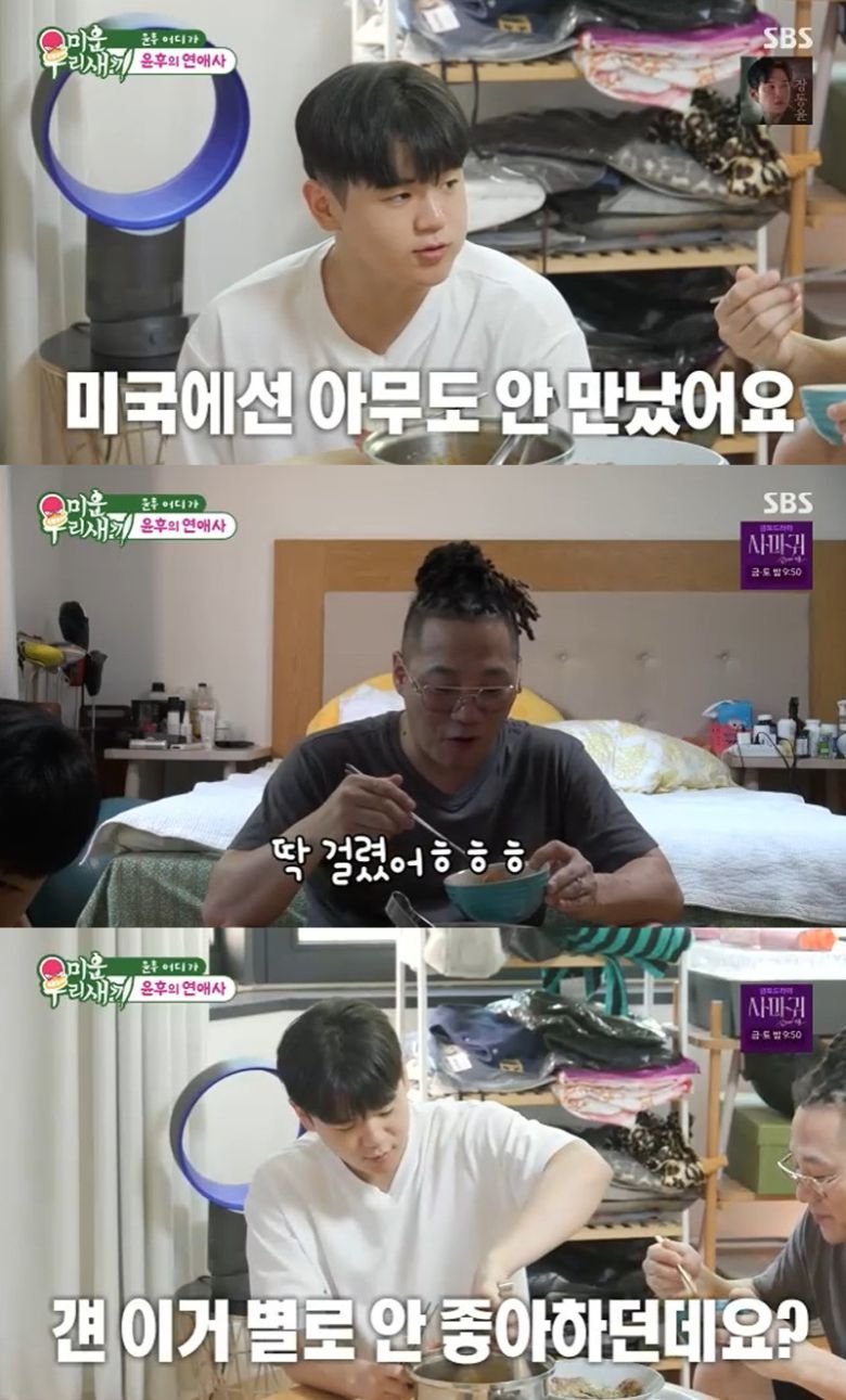 또한 윤후는 "지금 만나는 사람은 다른 나라 사람이냐"는 윤민수의 질문에 "미국에서는 아무도 안 만났다"고 이야기했지만, 집요한 윤민수의 질문에 결국 "걘 이거(라면) 별로 안 좋아하더라"라며 슬쩍 이야기해 눈길을 끌었다.