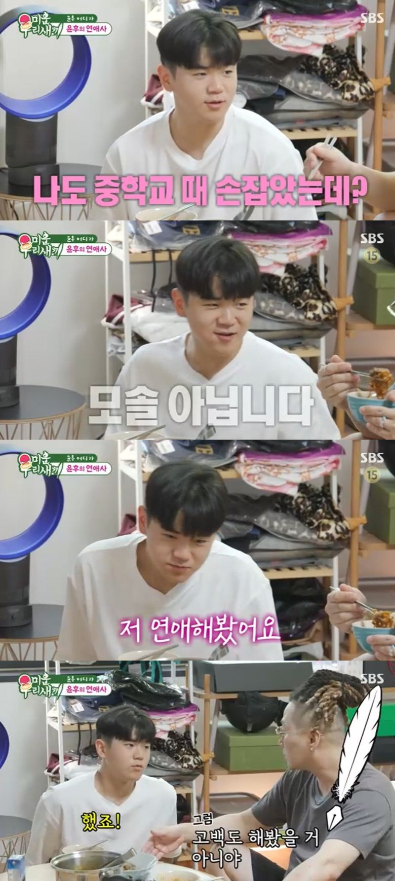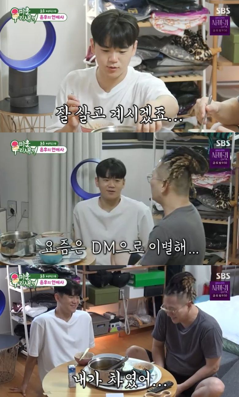윤후는 "헤어질 때는 메시지로. DM(다이렉트 메시지)으로 했다. 내가 헤어지자고 안했다. 내가 차였다"고 마저 고백했다.