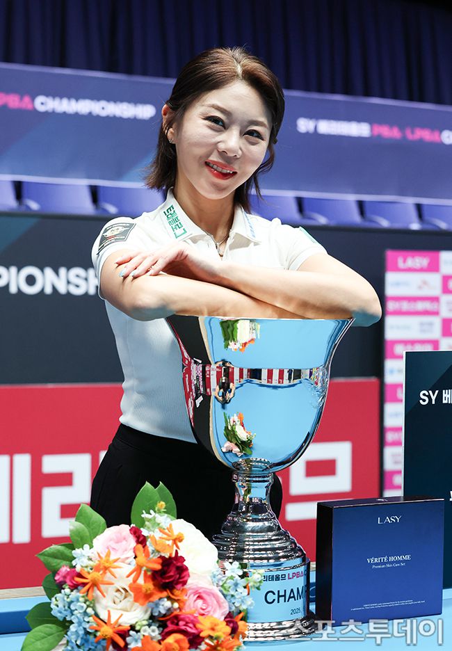 [고양(경기)=스포츠투데이 팽현준 기자] 7일 경기도 고양 킨텍스 PBA스타디움에서 열린 'SY 베리테옴므 LPBA 챔피언십' 김가영과 스롱 피아비의 결승전, 김가영이 세트스코어 4-2로 우승을 차지했다. 김가영이 포즈를 취하고 있다. 2025.09.07. [스포츠투데이 팽현준 기자 sports@stoo.com]이 기사의 카테고리는 언론사의 분류를 따릅니다.0공유하기