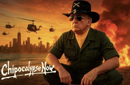 인공지능(AI) 합성 이미지로 추정되는 게시물 속 이미지는 영화 지옥의 묵시록의 한 장면을 차용한 것으로 보였다. 트럼프 대통령이 군복 차림으로 선글라스와 미 기병대 모자를 쓴 채 시카고 도심을 배경으로 미시간호 위를 날아가는 군용 헬기를 바라보는 장면이 묘사됐다.