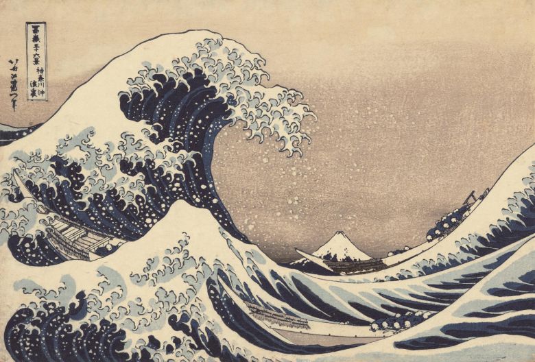 모두를 집어삼킬 듯한 맹렬한 파도. 위태롭게 요동치는 배 위엔 선원들이 납작 엎드렸다. 물보라는 하늘을 뒤덮었으나, 저 멀리 후지산은 우뚝 선 채 동요하는 기색조차 없다. 가만히 보면 파도 역시 후지산을 닮았다.