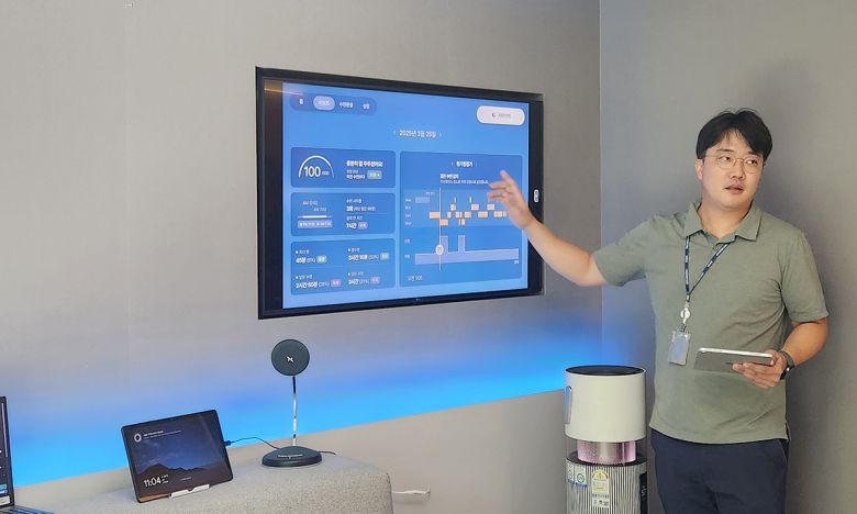 실제 잠자리에 들기 전 상황으로 설정하자 침실 내 사물인터넷(IoT) 장비들은 일제히 수면에 최적화된 환경 만들기에 돌입했다. 에어컨은 자동으로 숙면을 위한 적정 온도를 맞추고, 전열교환기와 산소발생기는 쾌적한 실내 공기를 유지했다. 잠들기 직전 켜져 있던 간접조명은 본격적인 수면에 돌입하면 완전히 꺼지는 식으로 조도를 조절했다. 신 책임연구원은 “(수면) 단계에 맞춰서 실시간으로 (장비들의) 제어값을 바꾸게 된다”고 설명했다.