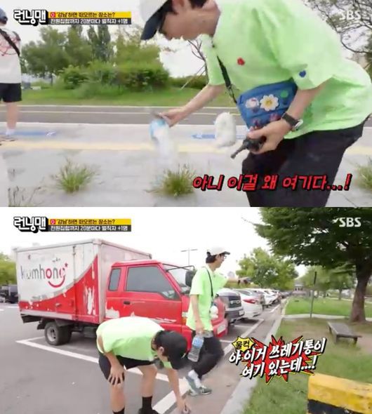 레이스 시작 약 5분 만에 하하와 조우한 유재석은 이후에도 쓰레기 줍기를 멈추지 않았다. 그는 “여기서 기다리다가 쓰레기가 너무 심하지 않냐. 이거 봐라. 여기다 놓고 가면 어떡하냐”며 “이거 쓰레기통이 여기 있는데. 이건 아니지”라고 분노 섞인 반응을 이어갔다.