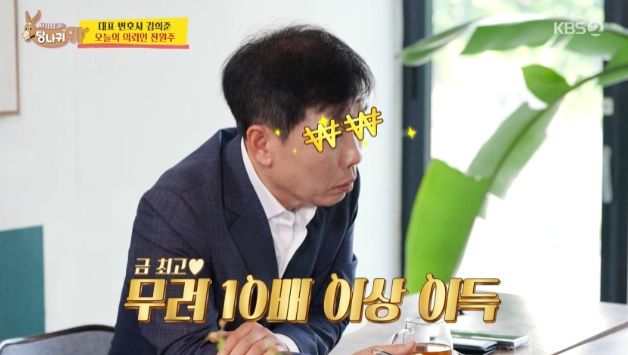 이에 김희준 변호사는 "10배 이상이 오른 것"이라며 "지금처럼 생활하면 돈은 절대 없어지지 않을것 같다. 젊은 남자 만나서 5천만원씩 주고 그러지 않는 이상은"이라고 돌직구를 날려 웃음을 자아냈다.