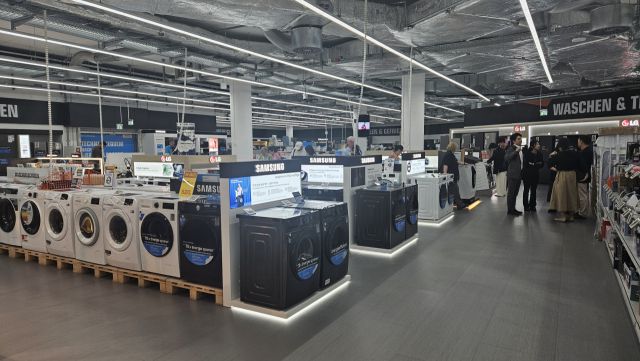 이날 방문한 매장에는 LG전자(066570)의 유럽 시장 공략법이 곳곳에서 묻어났다. 유럽 내 점유율 확대에 속도를 내는 LG전자는 고급화 전략을 중심에 놓으면서도 유럽인들이 중시하는 에너지와 공간 효율성도 지속 강화하고 있다. 또 다른 최대 시장인 미국이 고관세 등으로 불투명해지면서 또 다른 주요 시장인 유럽에서 공격적인 판매에 나서는 것이다.
