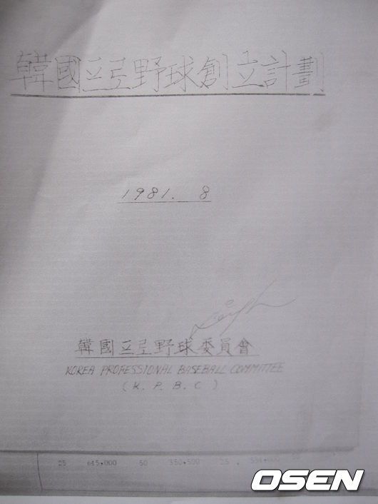 (아래)이용일 사무총장이 입안했던 ‘한국프로야구 창립 계획서’ 표지(최초 초고본)