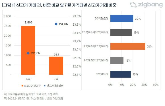 8일 직방이 국토교통부 아파트 매매 실거래가 자료를 분석한 결과, 지난 7월 서울 아파트 거래 3946건 중 932건이 신고가로 집계돼 전체의 23.6%를 차지했다.