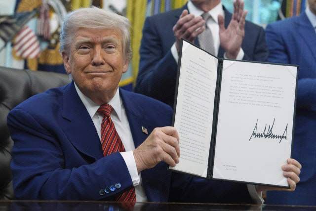 도널드 트럼프 미국 대통령이 지난 5월23일(현지시간) 워싱턴 D.C. 백악관에서 원전 건설 지원 행정명령에 서명한 후 이를 들어보이고 있다. (사진=AP연합뉴스) |
