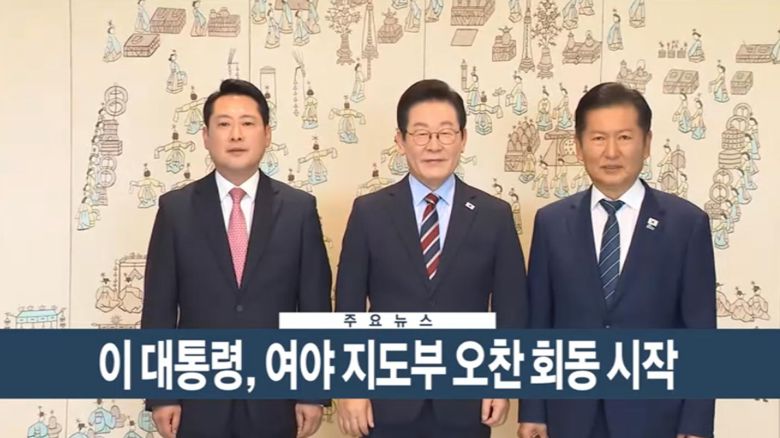 이재명 대통령과 정청래 더불어민주당 대표, 장동혁 국민의힘 대표가 용산 대통령실에서 오찬을 겸한 회동을 시작했습니다.