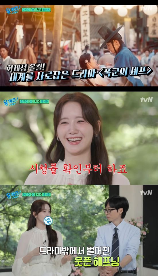 8일 tvN '유 퀴즈 온 더 블럭'(이하 '유퀴즈') 측은 공식 채널에 '화제성 올킬한 폭군의 셰프 임윤아! 드라마 밖 웃픈 해프닝과 명장면 비하인드부터 깜짝 스포까지!'라는 제목의 예고 영상을 업로드했다.