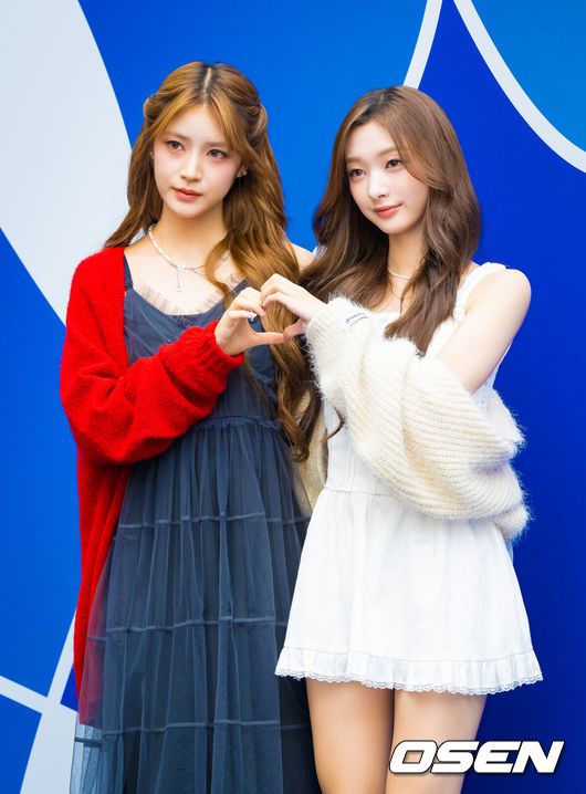 이날 비비는 원피스에 레드 컬러 카디건으로 포인트를, 혜린은 올 화이트 착장으로 사랑스러우면서도 세련된 스타일링을 연출했다. 특히 자연스러운 시선 처리와 비주얼을 통해 차세대 패셔니스타다운 면모를 선보이며 팬들의 이목을 끌었다.