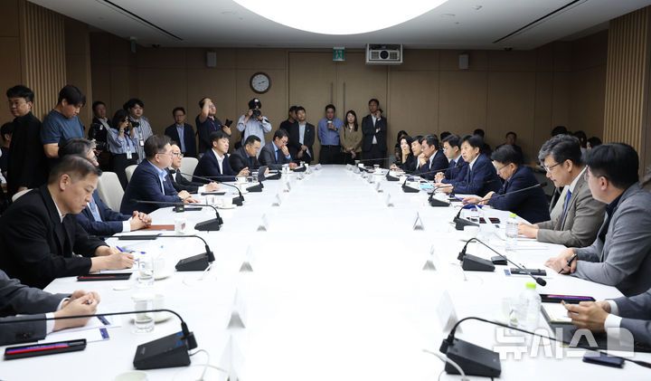 [서울=뉴시스] 남정현 기자 = 더불어민주당 코스피5000특별위원회와 경제형벌 민사책임 합리화 태스크포스(TF)가 9일 국회에서 경제8단체와 간담회를 열고 자사주 규제 강화, 배임죄 개선, 경제형벌 정비 등을 놓고 의견을 청취했다.