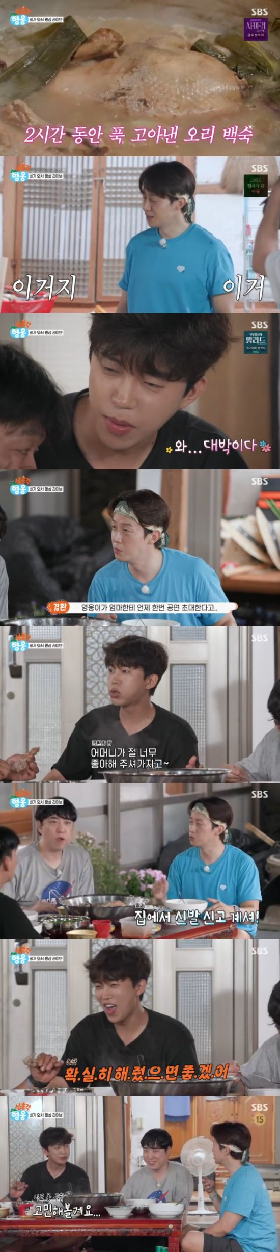 백숙을 먹으면서 허경환은 임영웅에게 "우리 엄마가 '미우새'에서 영웅 씨를 만났다. 그 때 영웅 씨가 엄마한테 '공연에 한 번 초대하겠다'고 했더라. 우리 엄마가 너무 신나했다"고 말했다.