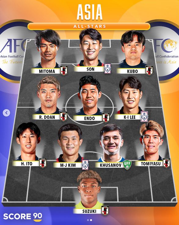 베스트 11 명단 나머지는 모두 일본 선수들이 채웠다. 우즈베키스탄 출신 압두코디르 후사노프(맨체스터 시티)를 제외하면 미토마 카오루(브라이튼 앤 호브 알비온), 쿠보 타케후사(레알 소시에다드), 도안 리츠(아인트라흐트 프랑크푸르트), 엔도 와타루(리버풀), 이토 히로키(뮌헨), 토미야스 타케히로(FA), 스즈키 자이온(파르마 칼초)까지 무려 7명의 일본 선수들이 이름을 올렸다.