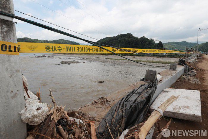경기 가평군 상면 대보교가 지난 밤 쏟아진 집중호우에 파손되어 있다. [사진=뉴스핌 DB]