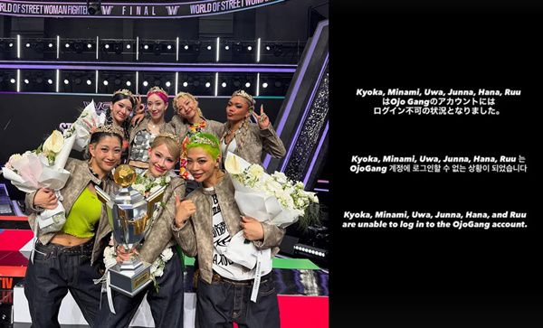 [스포츠투데이 임시령 기자] '스우파3' 우승팀 오죠갱의 쿄카가 팀 공식 인스타그램 계정에 접근할 수 없게 됐다고 알렸다.
