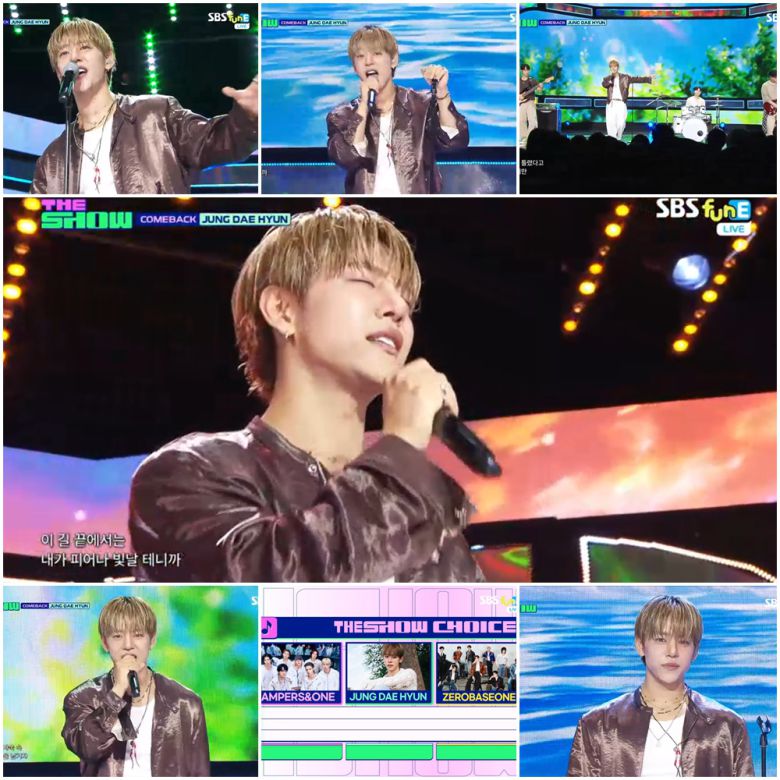 정대현은 지난 9일 방송된 SBS funE 더쇼에 출연해 '행로' 무대를 선보였다. 브라운 재킷과 화이트 팬츠를 매치한 세련된 스타일링으로 무대에 오른 그는 풍성한 밴드 사운드 위에 자유로운 손짓과 시선, 여유로운 제스처를 더하며 객석의 시선을 단숨에 사로잡았다.