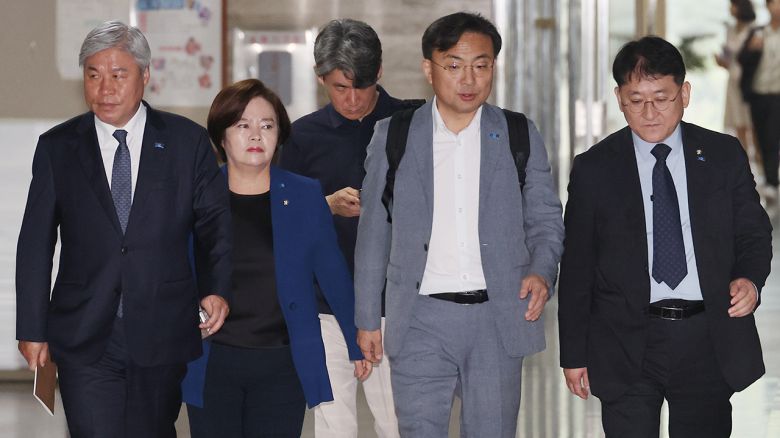 ▲ 조국혁신당 서왕진, 신장식 등 의원들이 8일 서울 여의도 국회에서 열린 의원총회에 참석하고 있다.