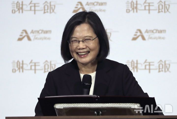 [타이베이=AP/뉴시스]대만의 차이잉원 전 총통이 일본을 방문 중인 사실이 뒤늦게 알려졌다. 사적 여행 차원에서의 방문이라고 하지만 중국의 반발이 예상된다. 사진은 차이 전 총통이 지난해  3월 28일 총통 재임 시절 대만 타이베이에서 열린 미국 상공회의소 연례 만찬에서 연설하고 있는 모습. 2025.09.10.