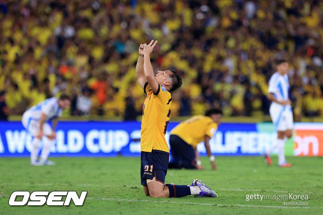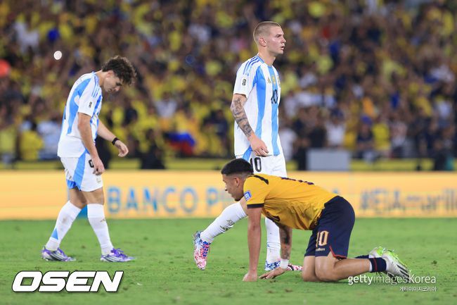 [OSEN=고성환 기자] '축구의 신' 리오넬 메시(38, 인터 마이애미)가 빠진 아르헨티나가 와르르 무너졌다. 퇴장에 페널티킥 헌납까지 겹치면서 에콰도르를 상대로 무려 10년 만에 무릎 꿇었다.