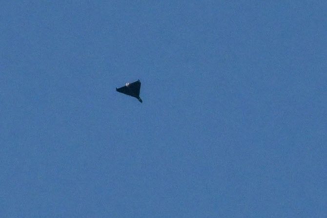 9월 7일, 우크라이나 전쟁이 계속되는 가운데 키이우에서 러시아의 드론 및 미사일 공격 도중 러시아 드론이 비행하고 있다.(사진=AFP)