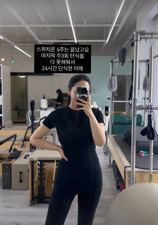 박지윤은 10일 자신의 SNS에 “스위치온 4주는 끝났고요. 마지막 주3회 단식을 다 못 채워서 24시간 단식한 어제”라는 설명과 함께 짧은 영상을 게재했다.