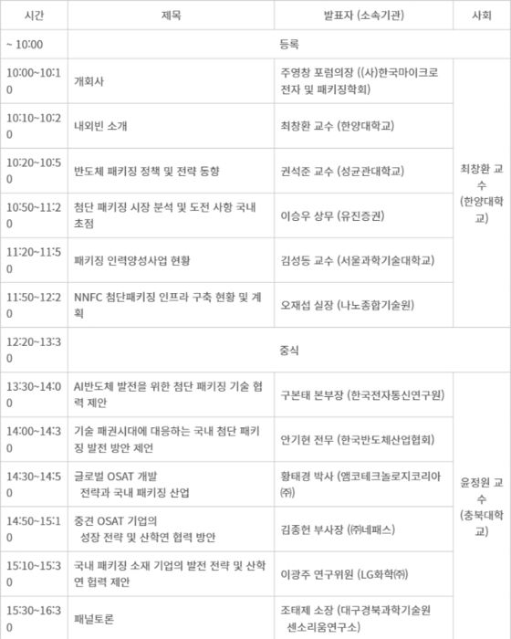 포럼에서는 세계 반도체 패키징 정책과 시장 동향, 인력 양성과 인프라 구축 등 첨단 패키징 기술 발전을 위한 다양한 제언과 아이디어가 공유될 예정입니다. 많은 관심과 참여를 바랍니다.