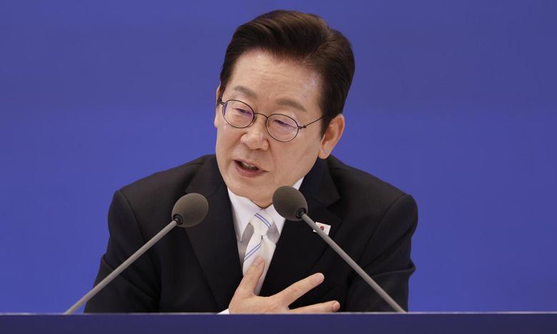 이재명 대통령이 11일 청와대 영빈관에서 열린 취임 100일 기자회견에서 취재진 질문에 답변하고 있다. 대통령실통신사진기자단