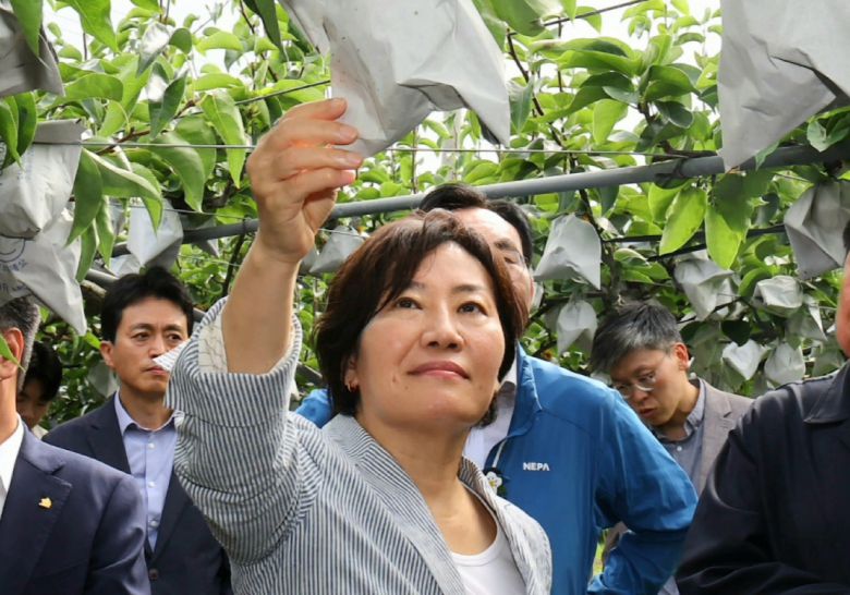 송미령 농림축산식품부 장관이 11일 충남 아산 둔포면 소재 배 생산농가와 아산원예농협 과수 거점 산지유통센터(APC)를 찾아, 햇배의 수확·출하 등 생육 상황 및 수급 상황을 점검했다.