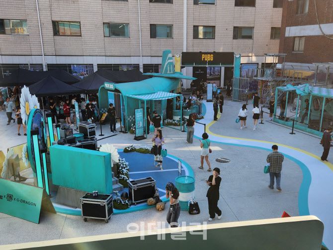 행사 현장은 배틀그라운드를 상징하는 민트색 조형물과 데이지 꽃이 곳곳에 심어져 있었다. 데이지 꽃은 아티스트 지드래곤의 상징한다.