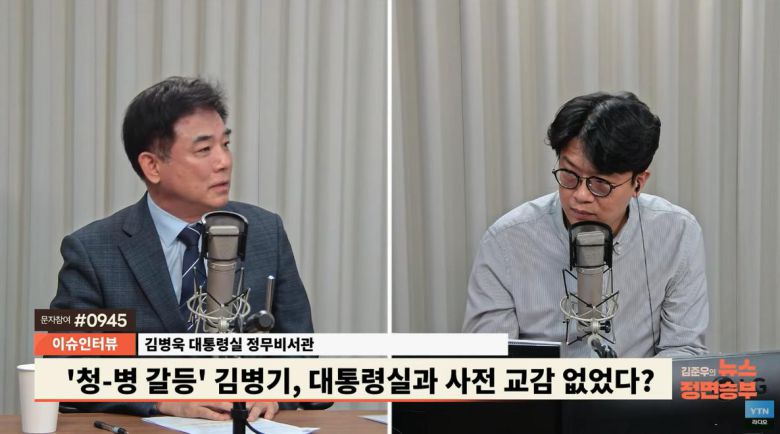 ☆김준우: 이재명 정부 취임 100일 기자회견이 있었고요. 그 사이에 대통령실과 국회의 불협화음이 있다 없다 논란이 많은 상황에서, 대통령실과 국회의 협치를 담당하는 최전선에 계신 분을 모셨습니다. 대통령실 김병욱 정무비서관입니다. 어서 오세요.