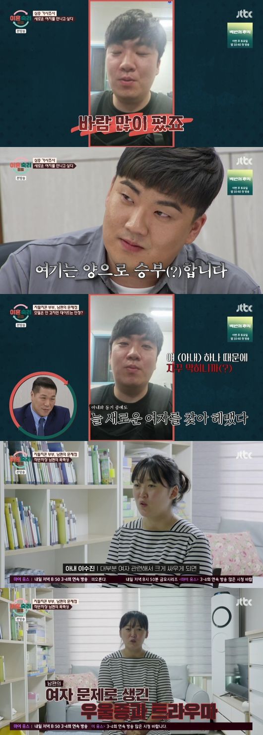 결혼 후에도 남편의 외도는 계속됐다. 신혼 초 채팅 어플을 통해 또 다른 여성을 만났고, 아내는 "그게 너무 충격적이어서 우울증이 심하게 와서 정신과 상담도 받았다"며 고통을 호소했다. 남편은 연애 시절 바람을 피운 이유에 대해 "헤어지고 싶어서 그런 적도 많았다"고 말하는 등 뻔뻔한 태도를 보였다.