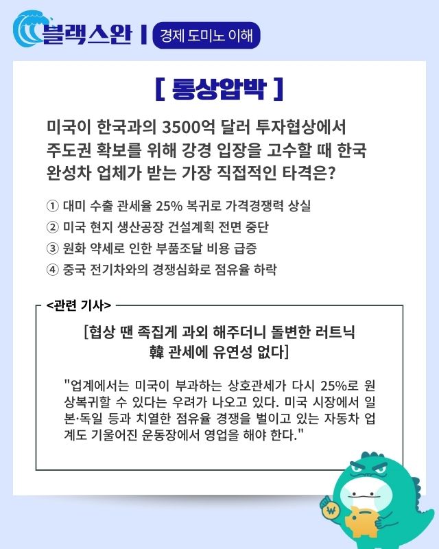 韓 대미투자 3500억달러 부담 가중···日과 유사하게 펀드 조성 시 제2의 IMF 위기 올 수도