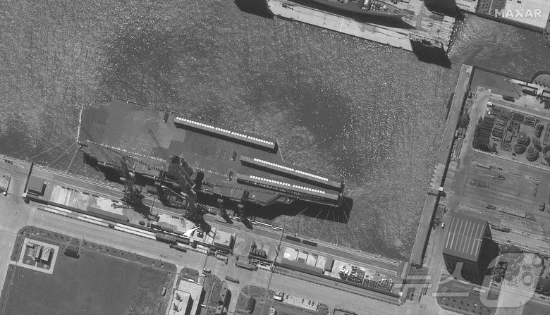 중국 상하이에서 촬영된 위성사진에 중국 항공모함인 푸젠함의 모습이 보인다. 2022.6.18 ⓒ 로이터=뉴스1 ⓒ News1 정은지 특파원 |