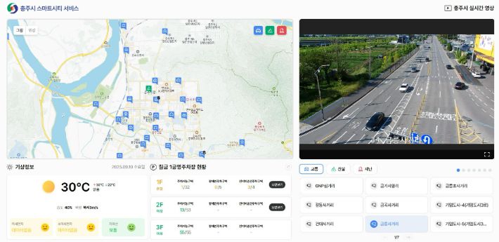 올해 5억 3천만 원을 투입해 구축한 이 시스템은 공영주차장 주차 현황과 교통 정보, 재난.안전 CCTV, 실시간 날씨 등을 지도 기반으로 시각화해 제공한다.