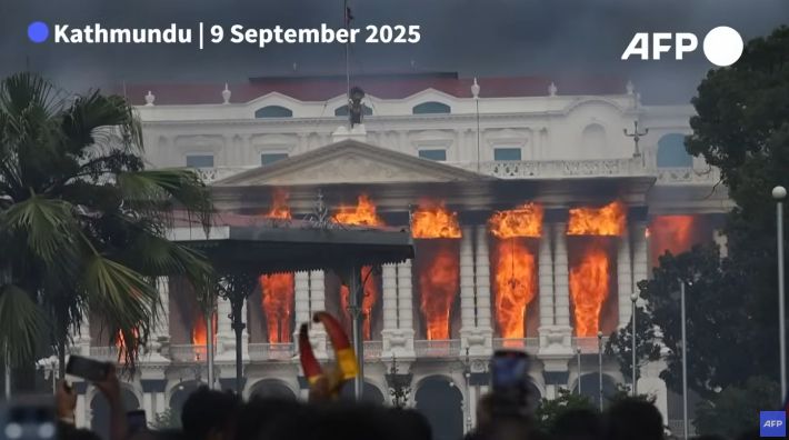 ◇ 김현정> 지금 뭐 그 영상이, 틱톡은 그래도 열어놓은 모양이에요. 틱톡을 통해서 지금 네팔의 영상들이 많이 세계로 알려지고 있는데 여러분, 한번 보십시오. 유튜브와 레인보우로 보실 수 있는 분들은 보세요. 국회의사당 그냥 활활 타고.