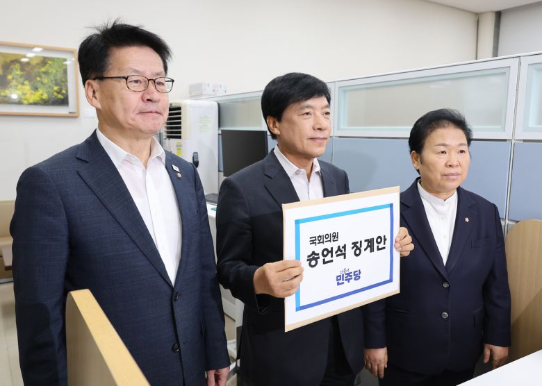 민주당 소속 의원인 이성윤 법률위원장, 임호선 수석사무부총장, 문정복 조직부총장은 이날 오전 국회사무처 의안과에 ‘국회의원 송언석 징계안’을 제출했다고 밝혔다.